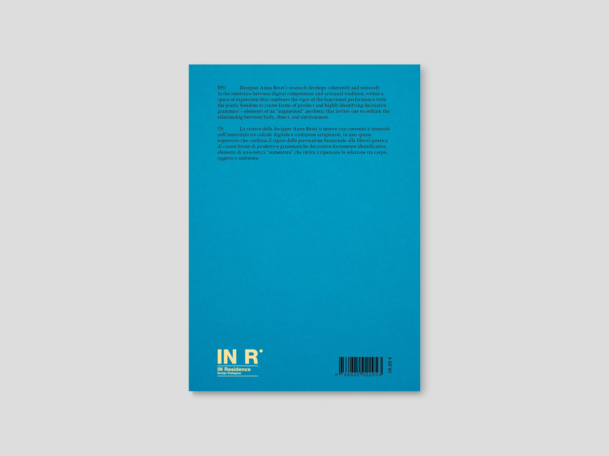 Written by Barbara Brondi & Marco Rainò, the volume recounts the experience of IN Residence’s Design Residency #4, inspired by the theme “Enigmatic Refractions”, of which Resei was the protagonist, alongside Ferréol Babin.